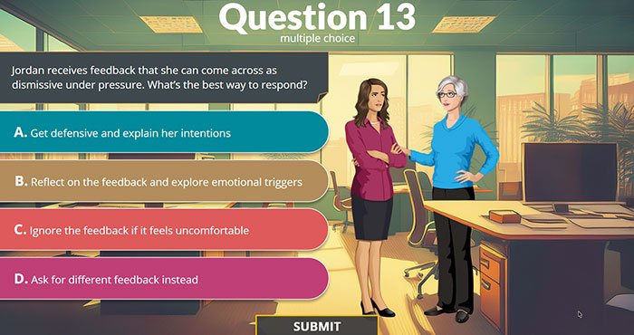 Realistic workplace scenarios make learning stick. They encourage critical thinking and help viewers apply information in context.