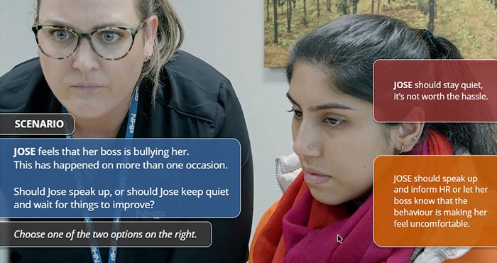 - In the video itself: Use overlays to present a scenario and ask: ‘What would you do here?’