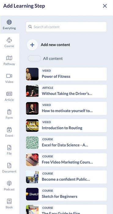 Different employees absorb information differently. The best learning platforms support a variety of content types like videos, podcasts, PDFs, quizzes and more, so every learner can engage in the way that suits them best.